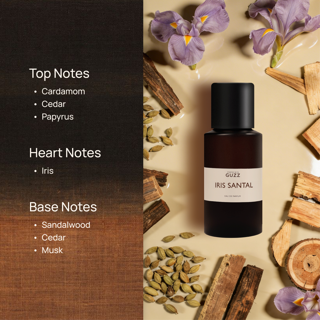 From the first breath, delicate violet and cardamom draw you in, gradually evolving into silky iris and polished cedar. As the fragrance settles, sandalwood leaves a warm and impeccably smooth trail that envelopes you in refined elegance.